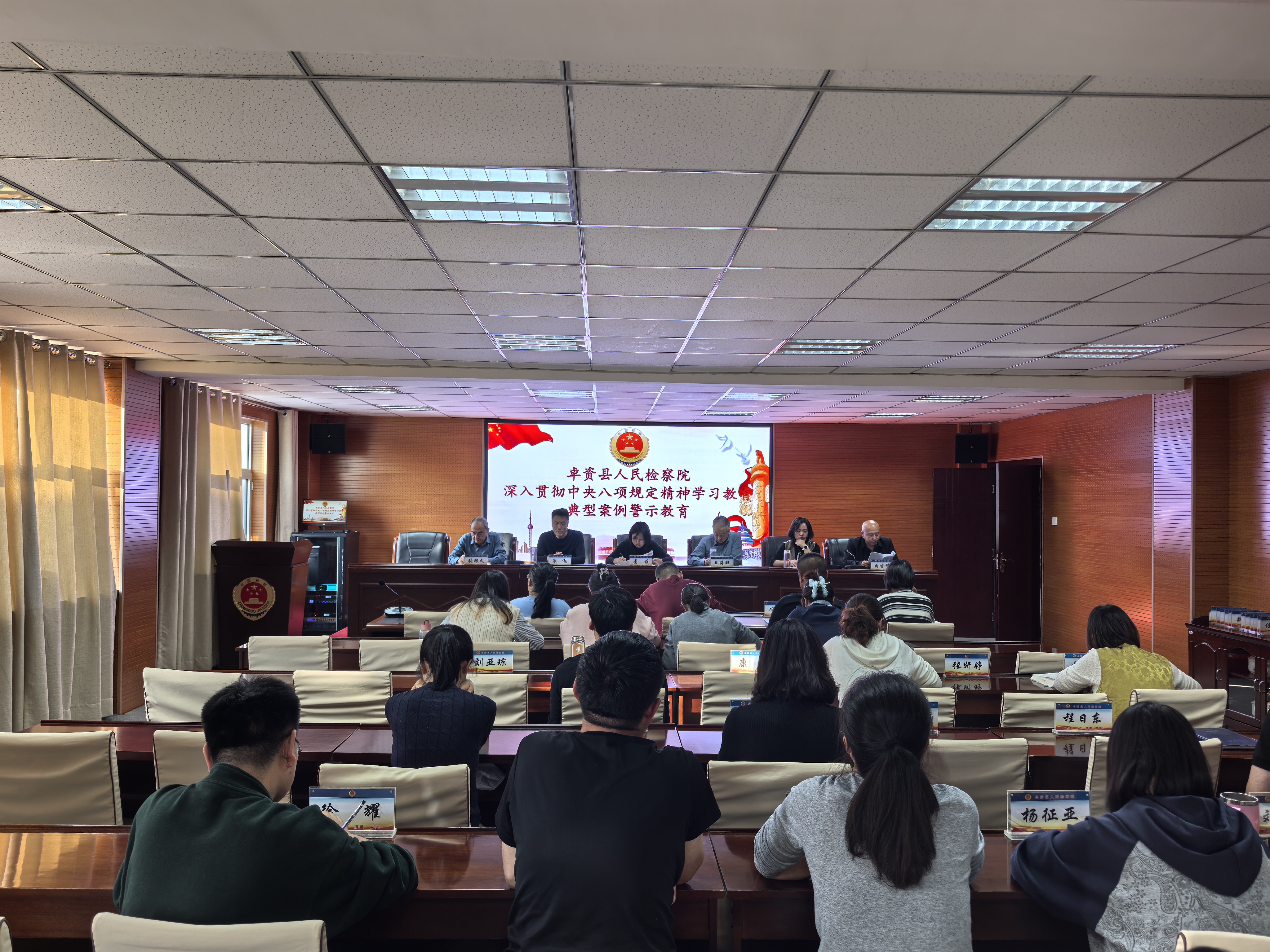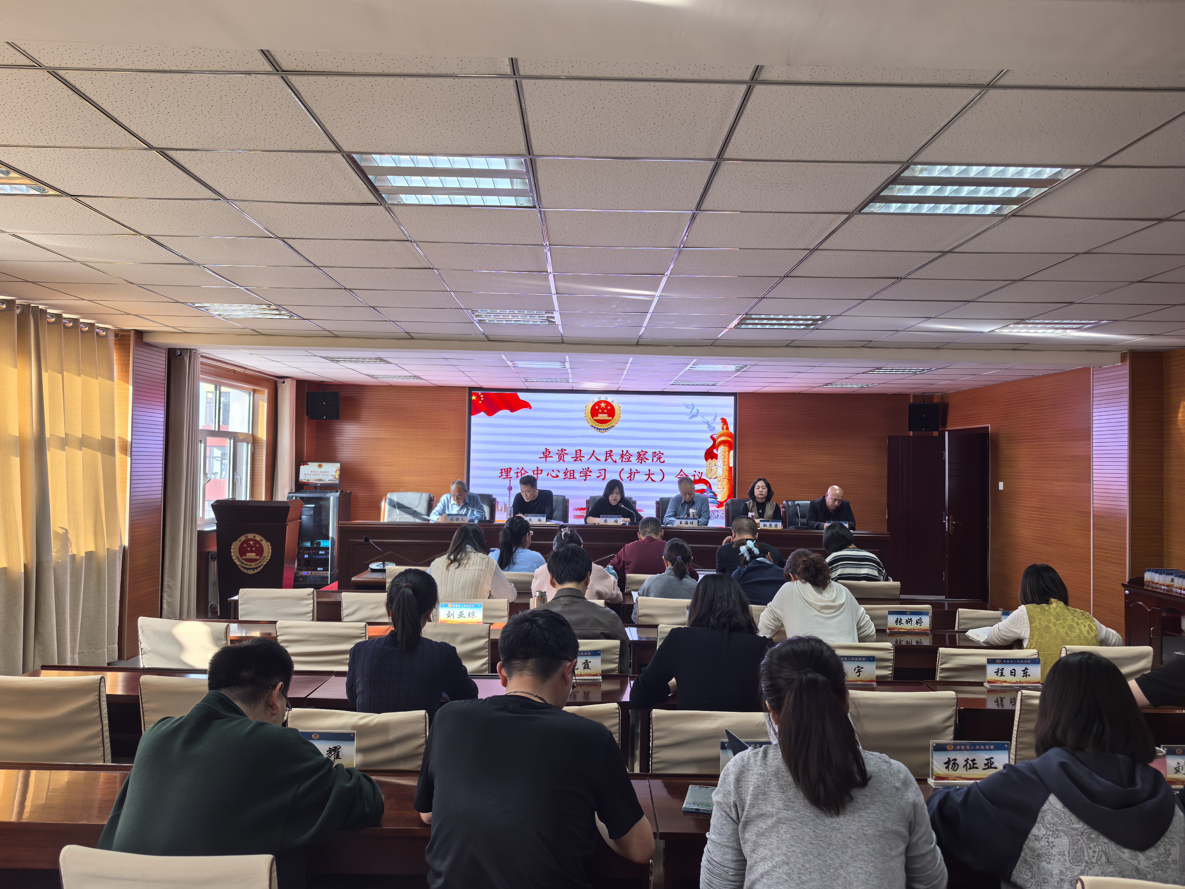 为迅速把思想和行动统一到党的二十届四中全会精神上来,切实以全会精神引领基层检察工作高质量发展,10月28日,卓资县人民检察院召开理论中心组(扩大)会议,传达学习党的二十届四中全会精神,学习贯彻自治区人民政府、自治区党委常委会精神和最高检、区院有关会议精神。全体检察人员参加会议,院党组成员张银久主持会议,党组书记、检察长图雅讲话。