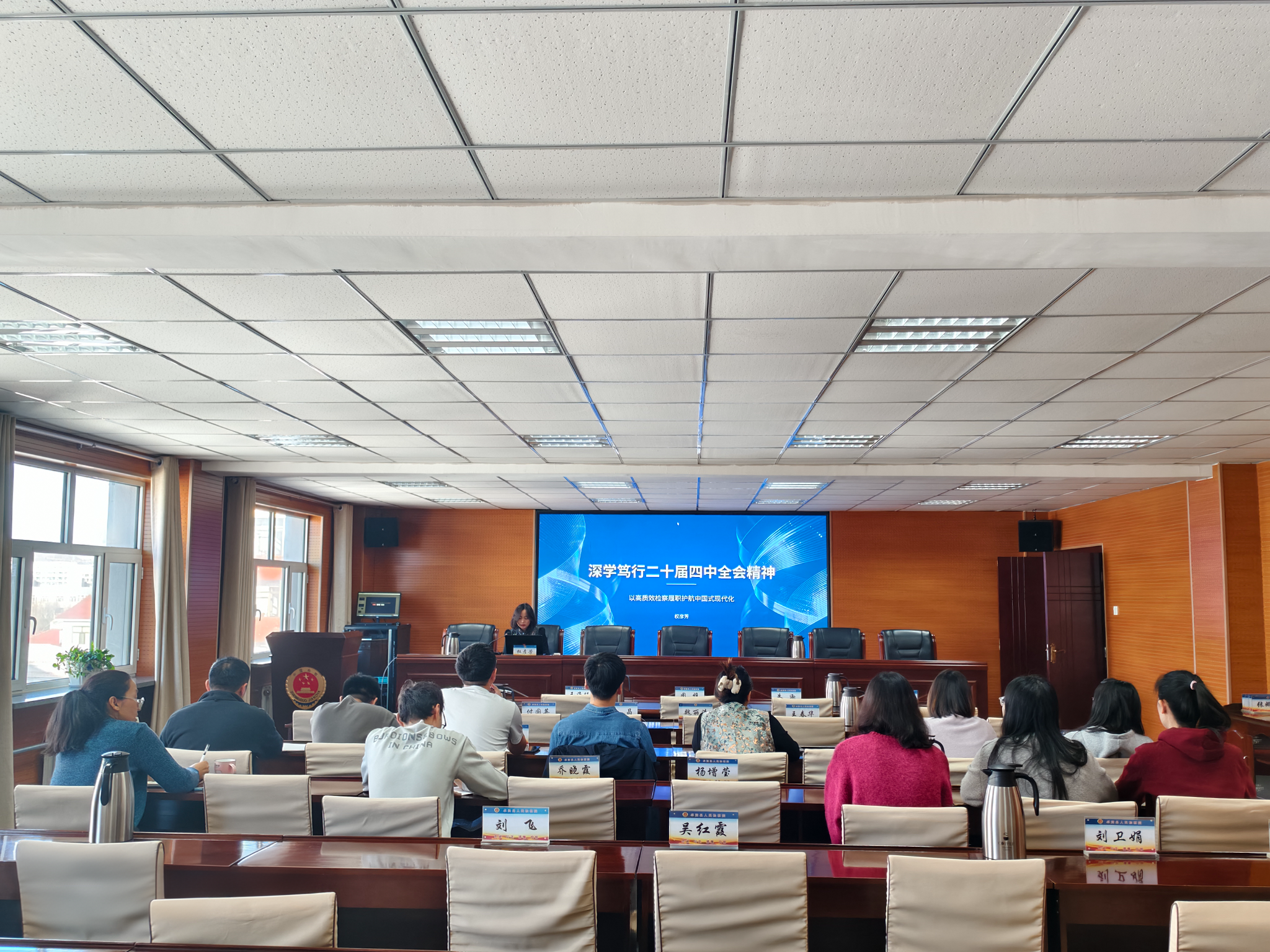 为推动党的二十届四中全会精神在检察工作中落地生根,12月30日,卓资县人民检察院举办专题党课,全体党员参加学习。院党组副书记、副检察长以“深学笃行党的二十届四中全会精神,以高质效检察履职服务中国式现代化”为题授课。